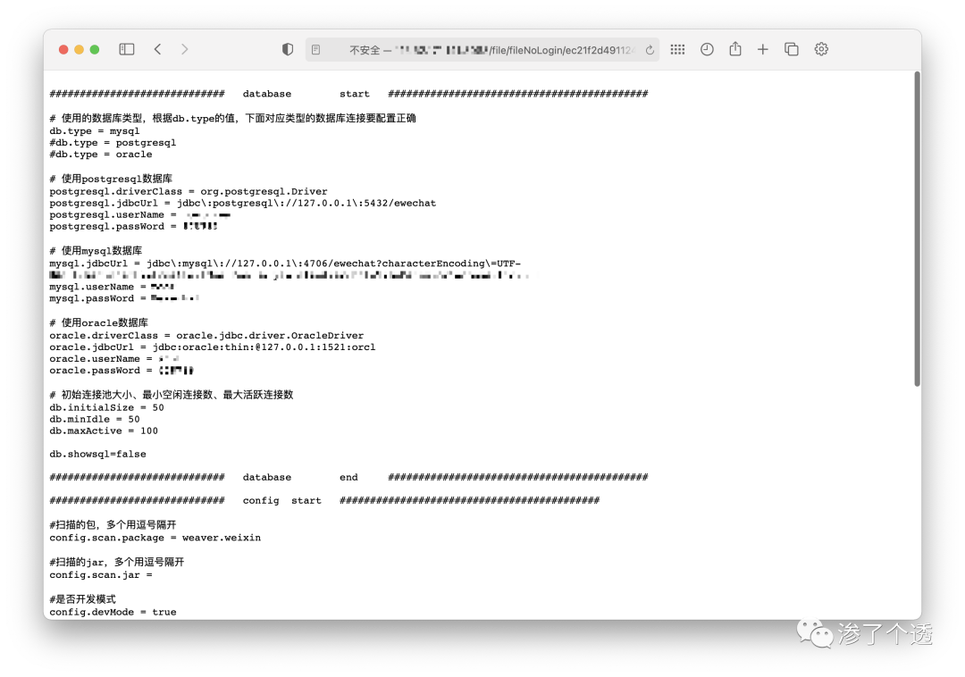 3、目录遍历+文件读取,我们能做的事情就很多了,比如读取管理员在桌面留下的密码文件、数据库配置文件、nginx代理配置、访问日志、D盘迅雷下载。 d://ebridge//tomcat//webapps//ROOT//WEB-INF//classes//init.properties d:/OA/tomcat8/webapps/OAMS/WEB-INF/classes/dbconfig.properties 泛微OA数据库